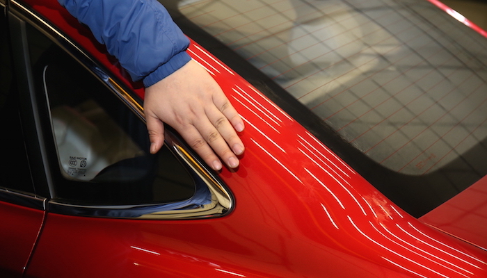 气流切分,表现在尾部后翼子板和尾灯组成一个气流分离面,让气流可以在车尾迅速分离车体;C柱本身的设计以及C柱与后备箱盖的夹角经过多次的调整,凸起的鸭尾使空气阻力形成向下的压力,以抵消尾部升力,同时进行底部扰流。
