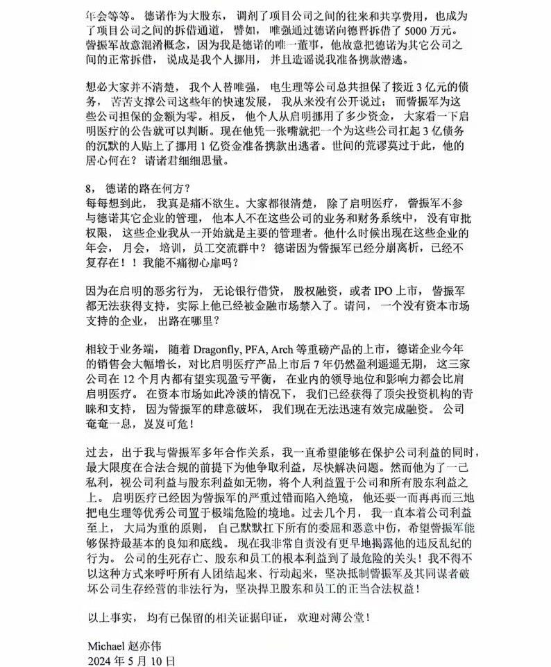 附录:对于港股上市公司启明医疗创始人訾振军的控诉书