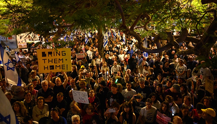 上周末,人质家属和反政府抗议者同时在特拉维夫举行大规模游行要求以色列政府下台,指责内塔尼亚胡为保住自己的总理之位而故意延长冲突。为驱散人群,警方动用了催泪弹并逮捕了30多人。