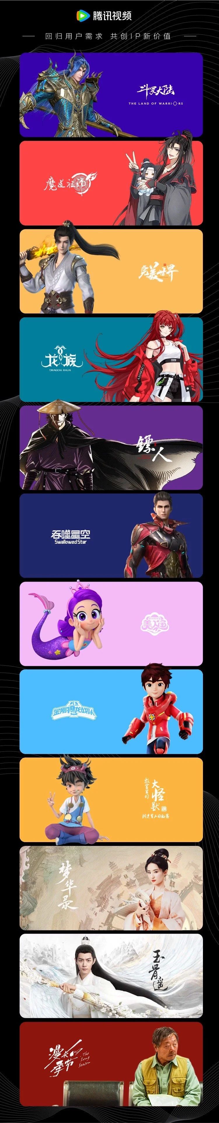 在2023年,广电总局发布的上线备案的508部网络动画片中,腾讯一家的备案数量就达到了179部,占总数的35%,涉及“斗罗大陆”“狐妖小红娘”“完美世界”等热门IP,此外还有“王者荣耀”“非人哉”“画江湖”IP新剧。