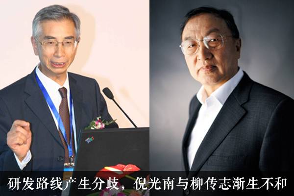 由于在研发路线上产生意见分歧,倪光南与柳传志渐生不和。每次工作会议都成了两人的争吵会。这场旷日持久的“战争”持续了整整半年。倪光南对标英特尔“芯片”技术,希望全力开展“中国芯”工程,却被柳传志当场泼冷水:“有高科技产品,不一定能卖得出去,只有卖出去,才有钱”。