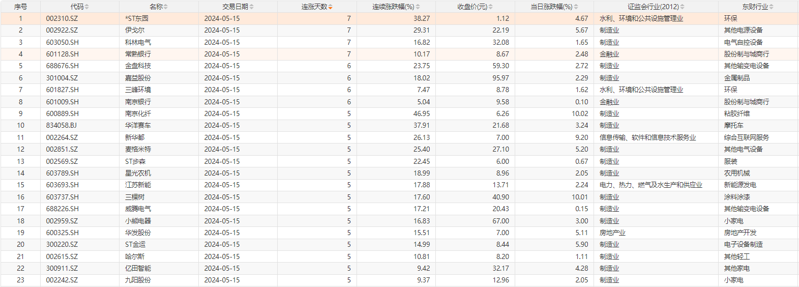 5月15日消息,Choice数据统计,A股今日4只个股连续7天上涨,包括常熟银行、伊戈尔、科林电气等;4只个股连续6天上涨,包括南京银行、金盘科技等;此外,南京化纤、新华都、江苏新能等33只个股连续5天上涨。
