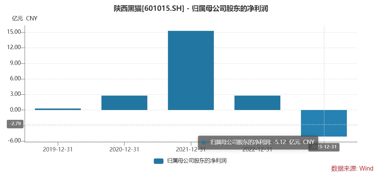 2023年,陕西黑猫实现营收185.93亿元,同比下降19.86%,主要是因为公司焦炭和化工产品的销售价格持续回落。净利润亏损5.12亿元,同比盈转亏,主要是因为报告期内受上游煤炭价格持续高企及下游钢铁行业市场低迷影响,公司主要原材料成本较高,主要产品销售价格同比下降,整体毛利率下滑;此外,因市场因素,新丰科技制气→公司合成氨生产线亏损,处于停工状态,该部分固定资产存在减值迹象,报告期内公司及子公司新丰科技计提了资产减值准备。