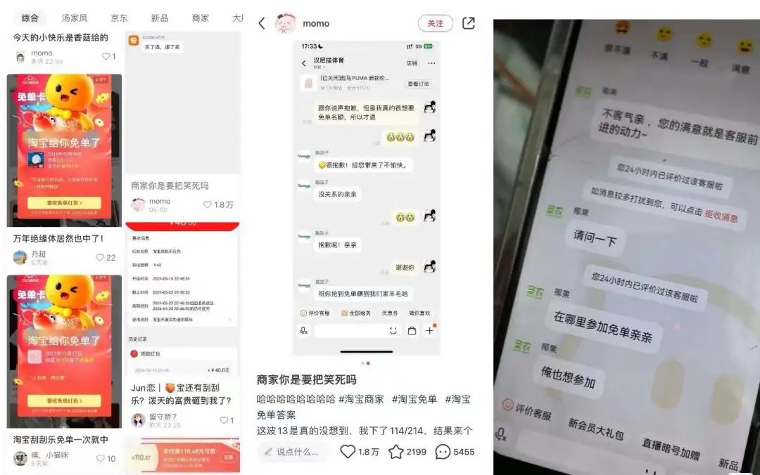 特别是近日淘宝推出的“免单活动”,低调开局却在社交平台疯狂传播:用户下单后随机抽中免单资格,不少用户重复下单,未中奖后又退款,无底线宠用户的态度和拼多多有得一拼。