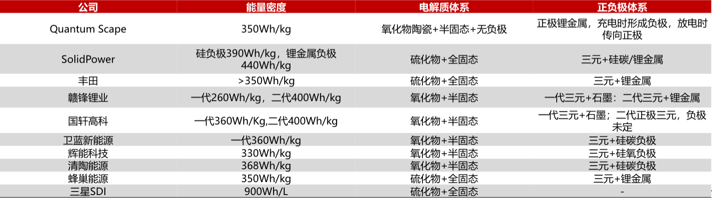 固态电池主要企业的技术路线
