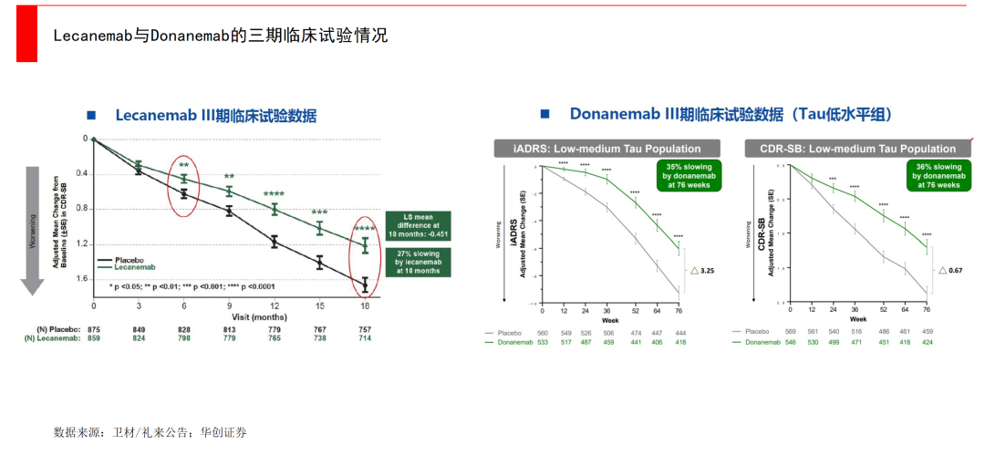 其实往前看2年,在2021年卫材/渤健的Aducanumab就获得了FDA批准,打破了此前美国近20年无阿尔兹海默症新药上市。但Aducanumab由于实验结果矛盾、临床获益不明确等问题,受到市场质疑。