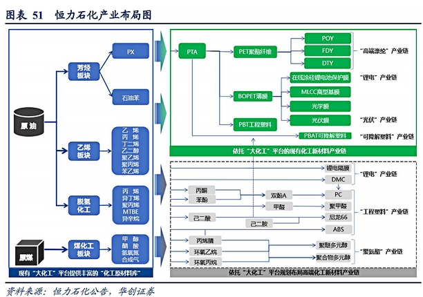 比如2021年恒力石化就投资300亿元,先后启动建设了包括年产80万吨功能性聚酯薄膜、功能性塑料项目,45万吨PBS类生物降解塑料项目,130万吨己二酸化工新材料配套项目和16亿平锂电膈膜项目等项目。
