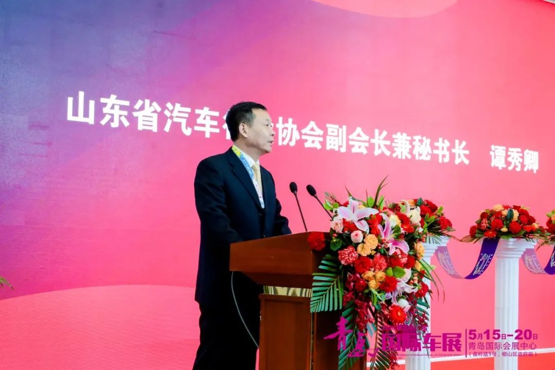 山东省汽车行业协会秘书长谭秀卿,青岛日报社党委书记、社长、青岛报业传媒集团董事长齐建国,青岛市商务局党组成员、副局长、二级巡视员王志刚,青岛市贸促会党组成员、副会长宋磊,青岛市工业和信息化局总经济师仲思卿,崂山区人民政府副区长苏文鹏,崂山区文化和旅游局党组书记、局长胡声锐,青岛囯信会展酒店发展有限公司副总经理谢虹,青岛嘉路博文旅科技有限公司总经理林涛出席开幕式。