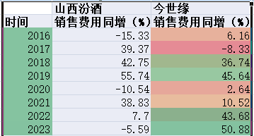 2020年因为新冠疫情,营销费用增速下滑10.54%,但实际销售费用依旧高达22.76亿,2021年营销费用快速回升到31.6亿;此后2年,汾酒销售费用增速看上去降低,但实际销售费用依旧保持在30亿以上。