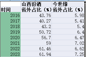 与山西汾酒相比,省外营收成为今世缘另一个明显短板。