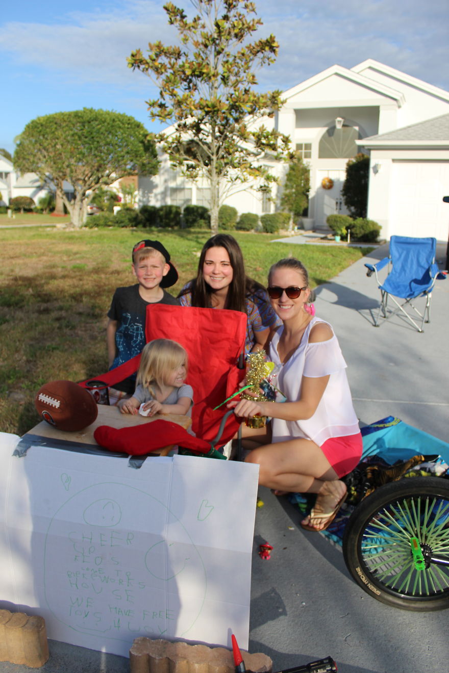 我们住在一个老旧的社区里,没有孩子。我们住在一条死路上,所以也没有来往的交通。可能没人注意到他,但是我也不忍心告诉他这件事。我不能告诉他可能没人会过来。这样做可能行不通。所以我帮他在我们这条路的尽头摆了这个摊子,拿了一个草坪椅,他就坐在自己的摊子后面。我们设好了之后他一直回头和我说“给孩子们发短信!”我的心碎了。他坐在那里,希望所有有需要的孩子都能蜂拥而至跑过来。他等待着他们。我一直在试着想办法,希望帮他实现愿望。我唯一能想到的主意就是在facebook上面发一些广告。所以我就这么做了,我向人们解释我的孩子想做什么,之后乞求能有一些人来,之后真的有一些人来了。