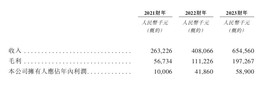 踩中时代红利的舒宝国际,近几年业绩持续飙升。2021财年-2023财年,公司录得收入分别约人民币2.63亿元、4.08亿元、6.55亿元,纯利分别为约人民币1000.6万元、4186万元、5890万元。