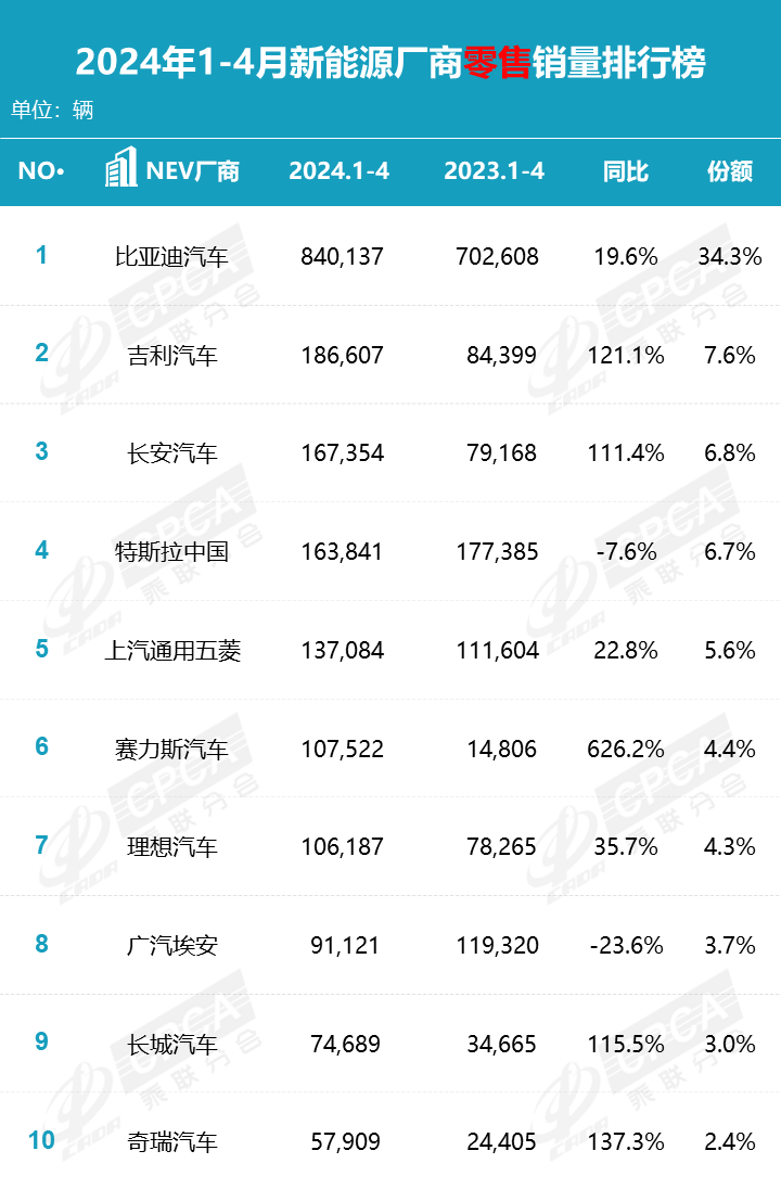 如果我们看最乘联会的近几个月新能源汽车销量排名,会发现,倒霉的蔚来汽车继续跌出前十,2月时第十刚好,3月掉出、4月继续不在。
