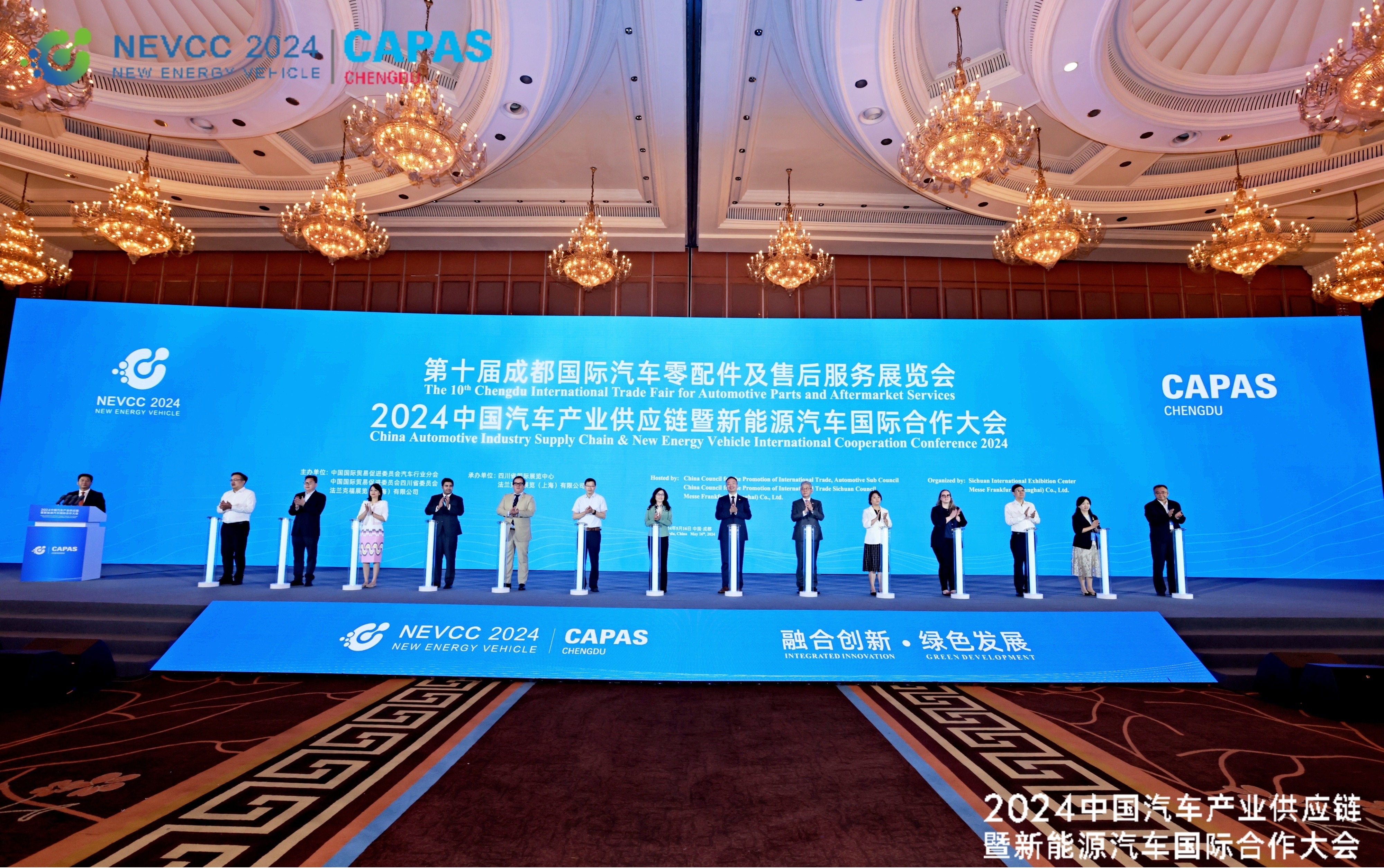 5月16日,第十届成都汽配展主题活动——2024中国汽车产业供应链暨新能源汽车国际合作大会在成都召开。本次大会以“融合创新、绿色发展”为主题,聚焦中国汽车产业供应链安全与竞争力提升,邀请中外政府部门负责人、行业专家、车企高管、服务机构代表等,围绕汽车供应链新生态建设、产业链绿色转型、新能源汽车国际合作、汽车出口模式的进化与演变等热点话题进行深入讨论,凝聚行业共识,共促汽车产业链“新质”“高质”发展。四川省贸促会会长黄莉、四川省商务厅一级巡视员刘祥超、中国贸促会汽车行业分会发展部主任李建军、法兰克福展览(上海)有限公司总经理于光等嘉宾出席大会。