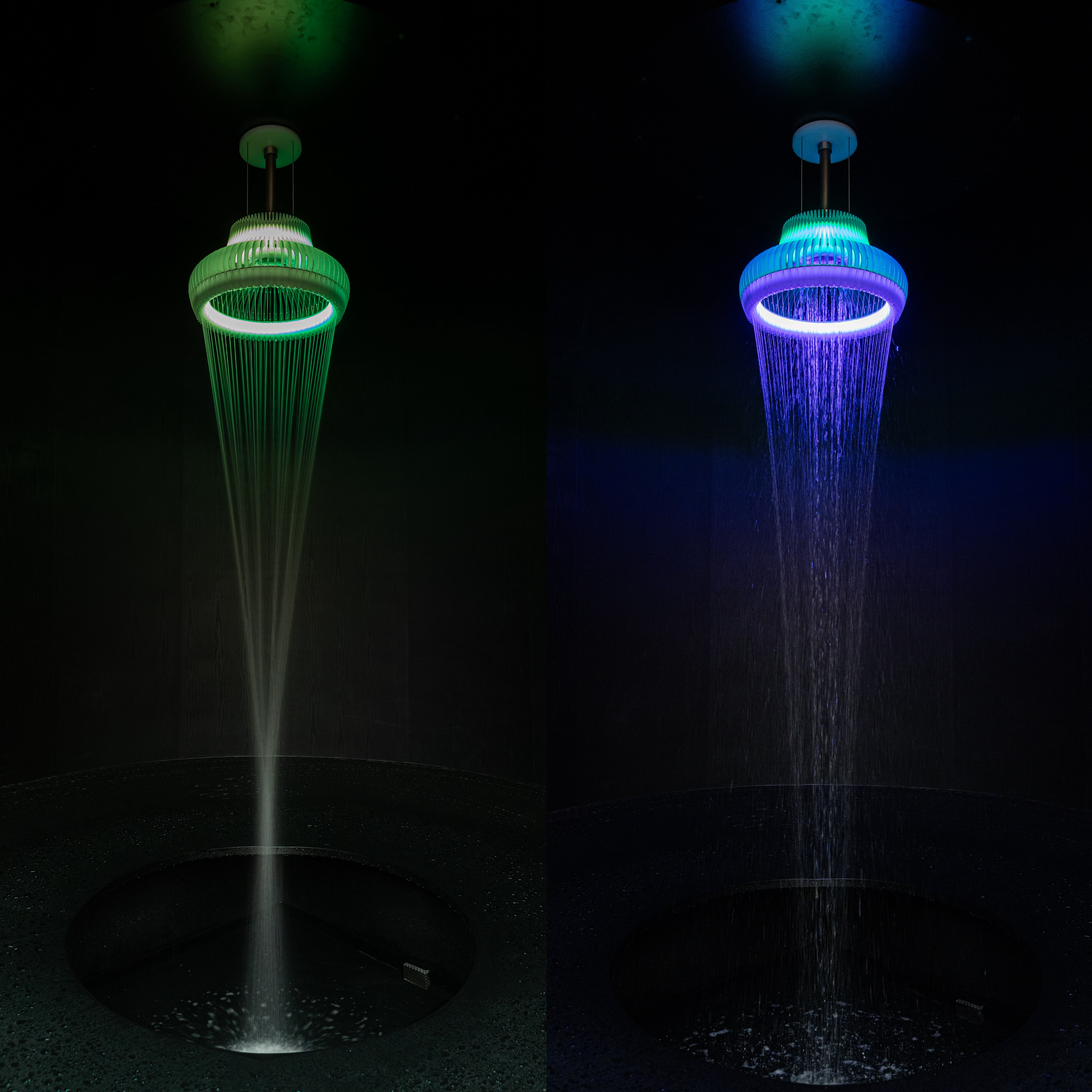 科勒LUMIWAVE头顶花洒继米兰设计周后首度亮相中国,其设计灵感源自于自然之水,提供三种不同的水型模式,既可单独开启,也可任意组合,全方位满足用户SPA级的沐浴个性化需求。LUMIWAVE再次将科勒的淋浴体验提升到一个新境界,并首次将水流与声光融合,富于变化和组合,带来极致个性化的沉浸式沐浴时刻,获得全身心的放松与焕活。
