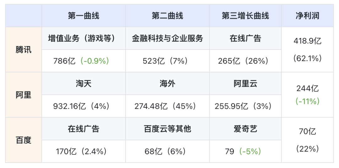 腾讯、阿里、百度等互联网大厂先后发布他们新一季度的财报,作为老牌的互联网大厂,他们在某种程度上代表了不同规模、不同商业模式的几类典型互联网企业生存现状。