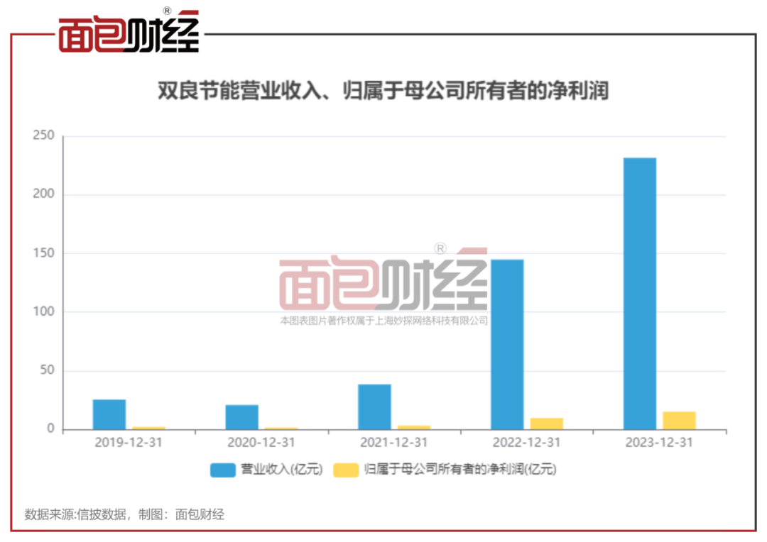2023年,双良节能实现营收231.49亿元,同比增长59.91%;归母净利润15.02亿元,同比增长57.07%。