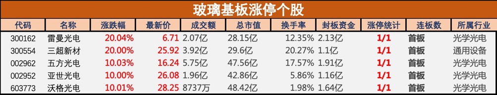 5月17日,玻璃基板概念股震荡走高,雷曼光电(300162)、三超新材(300554)、五方光电(五方光电)、亚世光电(亚世光电)、沃格光电(沃格光电)等涨停;惠柏新材(301555)、瑞丰光电(300241)、联建光电(300269)等跟涨。