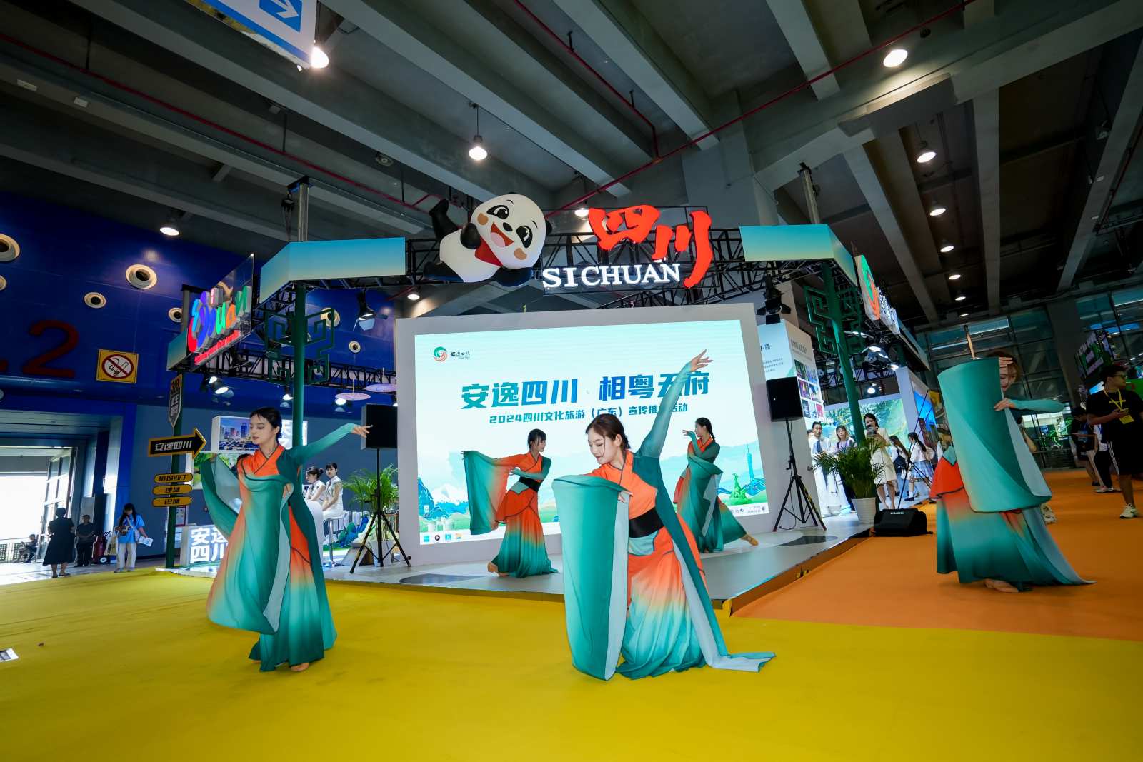活动上,四川文旅吉祥物“安逸”熊猫,也特别带来了它的最新节目《安逸和他的朋友们》,并发放多轮礼品,在欢快热烈的氛围中,发出到四川走一走的邀请,亲身感受天府之国日新月异的“新气象”和休闲舒适的“慢生活”。