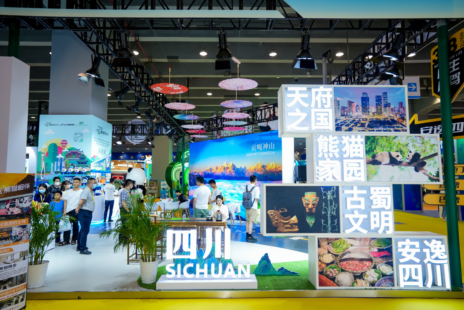 进一步深化跨地区文旅协作,持续推动夏季文旅消费,5月17日,展馆内还举办了“安逸四川 相粤天府”四川主题宣传推广活动,四川发布了“蜀境画卷·文脉探源”古蜀文化寻踪之旅、“乐游世园·天府美韵”蜀地文化品鉴之旅、“归园田居·走近世遗”天府自然生态之旅、“红色沃土·青山映翠”川东人文揽胜之旅、“云上高原·星梦可及”国道318自驾之旅、“惬意‘石’光·寻味川南”清凉天府消夏之旅、“传习非遗·遇见攀西”天府文化体验之旅等七条精品主题旅游线路,涵盖了四川历史人文、自然奇景、新潮玩法和特色美食,让游客畅享“安逸”之旅。四川省中国青年旅行社推出熊猫专列“安逸号”“穿越时光号”“熊猫专列趣味沙龙”等系列产品,巴中、自贡、宜宾、雅安、剑阁、色达、理塘等文旅推介官,同台推介四川夏季特色文旅产品和精品线路,借力广州旅展平台,诚意邀请海内外八方游客。