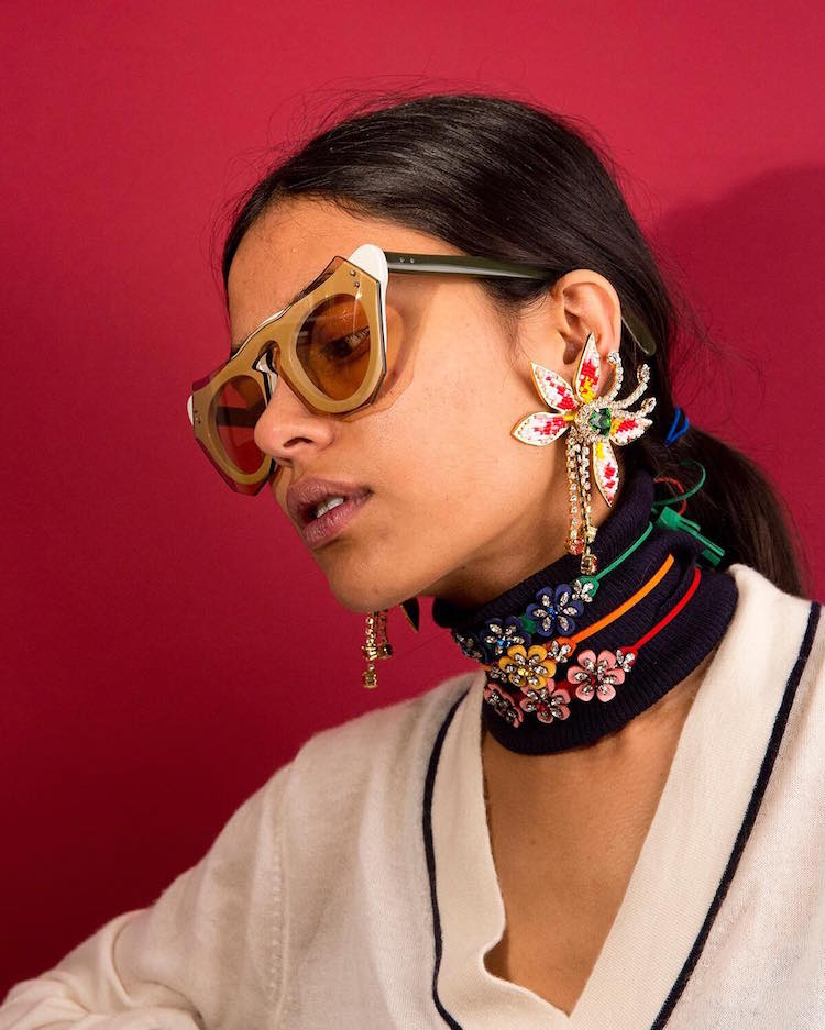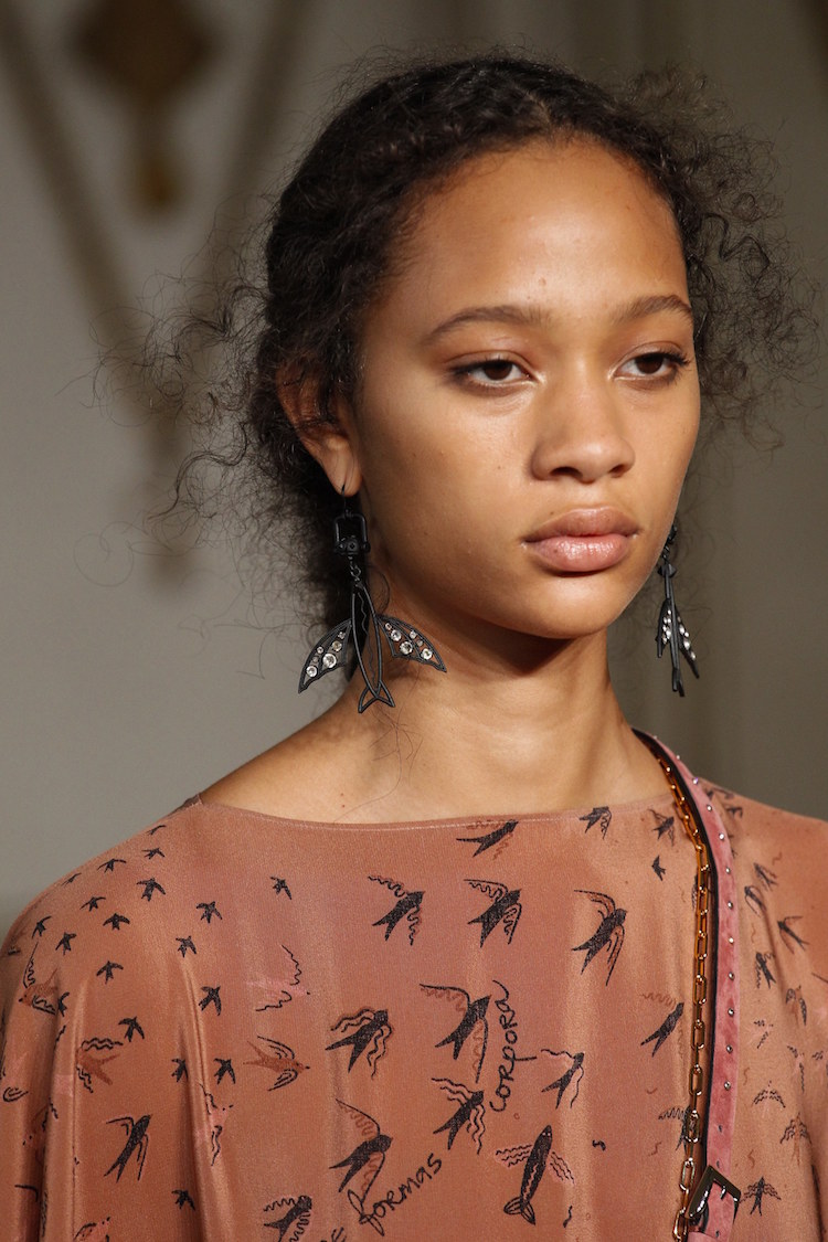 花朵款的大耳环是最符合春季又最少女的款式,与休闲西装等搭配都可以制造减龄感。而2017春季秀场上像Kenzo和Delpozo等品牌的模特都有佩戴花朵款的大耳饰。
