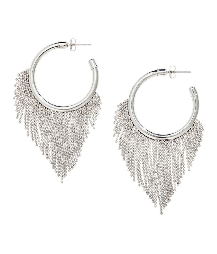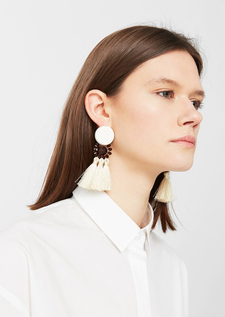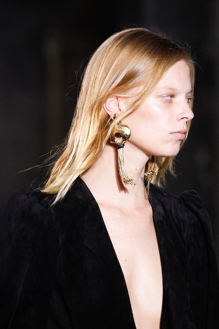 流苏款今年依旧很时髦,Saint Laurent 2017春季依然用了许多流苏款的大耳环来搭配暗黑系的服饰。流苏长款耳环还可以中和圆形脸带来的肉感。