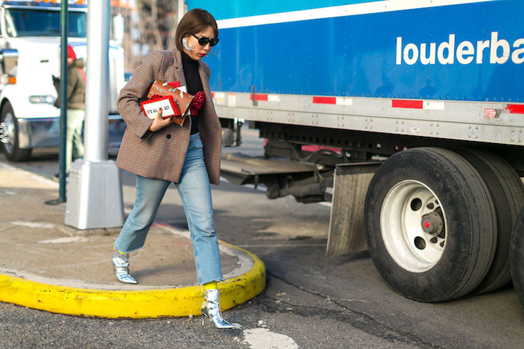 还有街拍达人会用它与复古的格纹西装进行搭配,避免格纹西装带来的老气感。