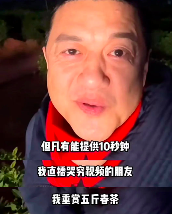 李亚鹏对于“直播哭穷”的描述似乎很不满,第二天开始全网悬赏,声称“但凡有能提供10秒钟,我直播哭穷视频的朋友,重赏五斤春茶”。