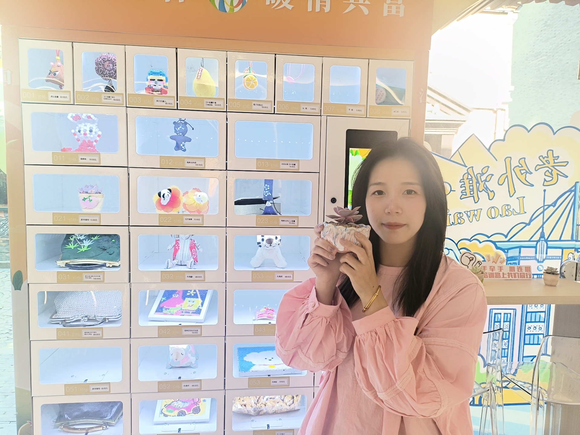 自助义卖柜中,精美的手工制品琳琅满目,既有结合中国传统文化的非遗手作,也有创意十足的编织品,还有充满艺术气息的陶艺品。这些作品均出自残疾人之手,他们用自己的双手和汗水,诠释了生活的美好与坚韧。