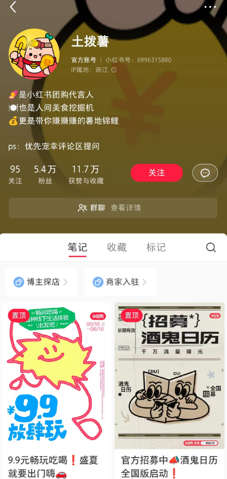 2023年也是小红书本地生活加速的一年。去年4月小红书开设本地生活官方账号“土拨薯”;5月上线团购功能;7月上线探店合作中心等等。今年年初,小红书还在APP首页顶部栏新增“附近”一级入口,通过模拟地图的形式,基于地理位置展示不同区域内的吃喝玩乐相关笔记、直播及群聊内容。