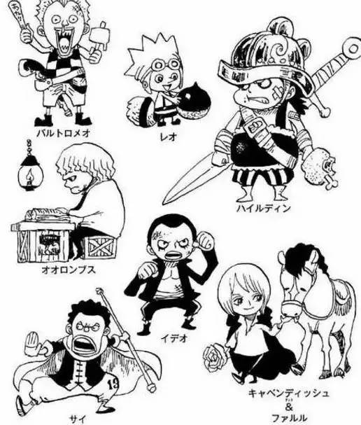 俊美海贼团船长,卡文迪许;巴托俱乐部船长,巴托洛米奥;八宝水军第13代栋梁,老蔡;XXX健身房格斗联合艾迪欧;咚塔兵团兵长,雷欧;巨兵海贼团船长,海尔丁;约塔玛利亚大船团提督,奥隆布斯。