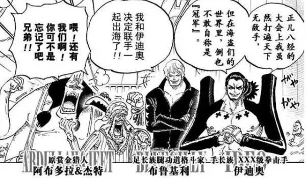 长手族:海贼王中的种族在香波地岛就已经有所表示,艾迪欧属于长手族。