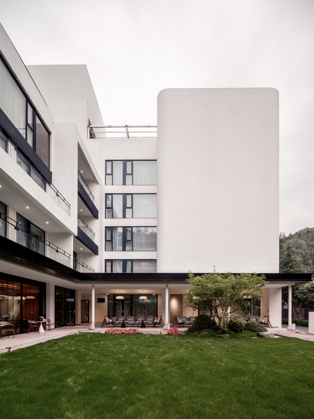 酒店建筑⾯积10300㎡,依托于⻄岭雪⼭和花⽔湾温泉两⼤景观,强调建筑与⾃然的和谐共⽣,充分融⼊⼭⽔环境,重新定义了空间与⾃然的美学关系。