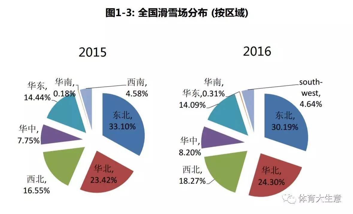 ▼虽然非北方雪场的数量在增加,但因为北方受冰雪产业利好影响较大,北方雪场占比在2016年有提升