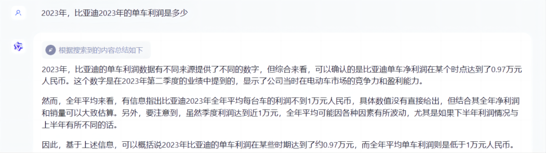 不过,对于过去已有的单车利润信息,几个大模型产品均能通过联网搜索,快速获得。