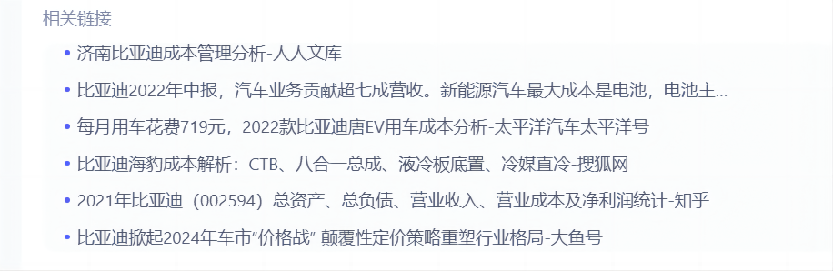 进一步追问这些公司的业绩情况,一些大模型会建议我直接查阅每家公司的财报,一些大模型则陈列出了部分公司的部分业绩和销量。这些的确在一定程度上,有助于我完成比亚迪与行业内的其他公司的一个对比。