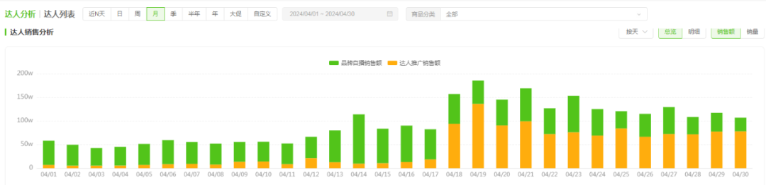 而另一品牌KATO,飞瓜数据抖音版显示,其4月的销售分水岭出现在4月18日,在此之前品牌自播占比高于达播,但此后二者反了过来,这中间起作用的,是一个账号名为@豆包好价优选的剧情类博主。仪美尚观察发现,KATO与其合作开始于4月17日,此后的每一天(4月),该达人都位居KATO带货榜第一位。