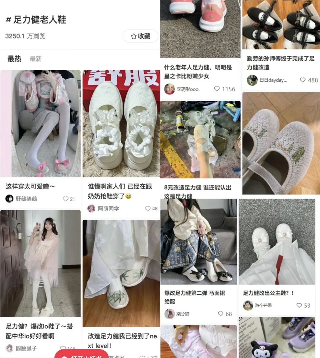 现在在小红书上搜索足力健,再也难见张凯丽老师手里的三角形了,取而代之的是一个流行于Z世代之中的新词:「爆改」。