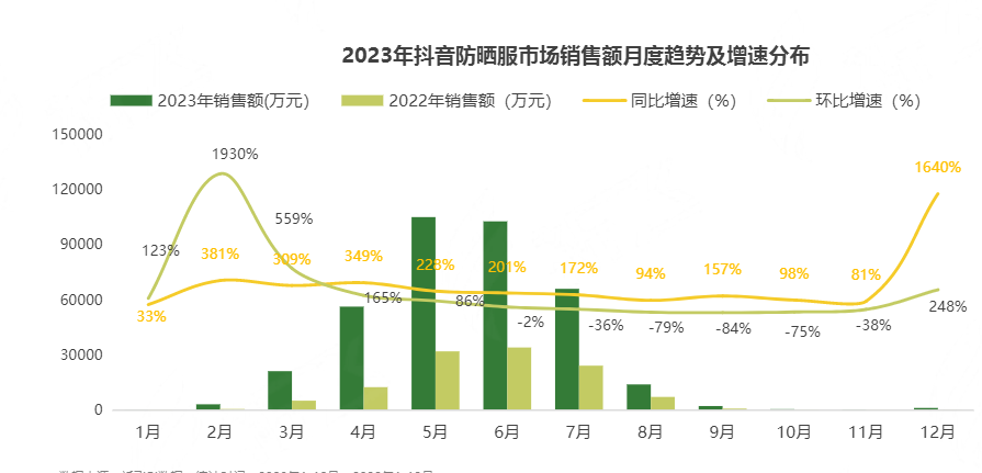 据相关报告显示,2023年抖音防晒市场GMV约37.3亿元,同比增长217.4%。目前消费者对防晒产品的需求持续增长,已有高达1.5亿的防晒关注用户,随着消费者对防晒问题的愈发关注,市面上防晒品牌日益增长。