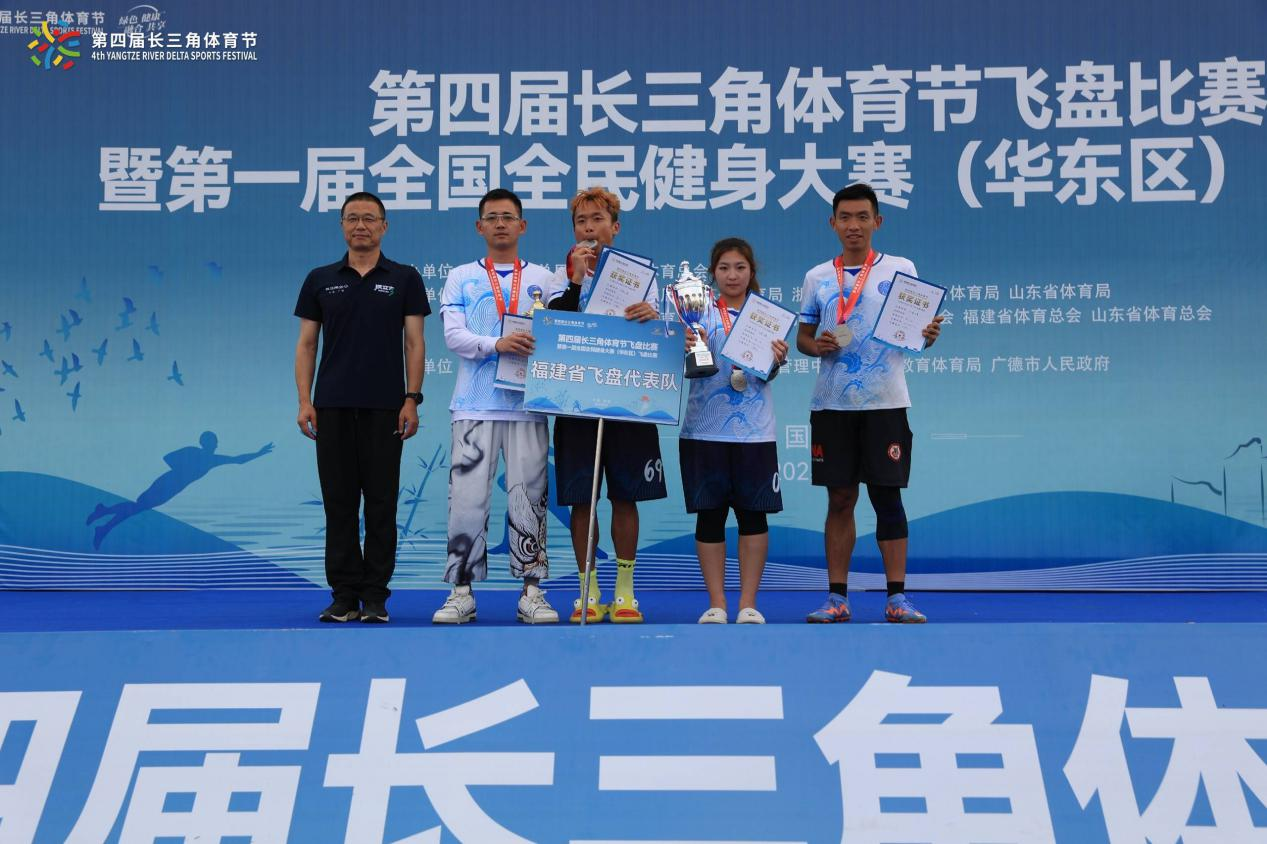 经过两天的小组循环赛和交叉淘汰赛的比拼,最终,江苏飞盘代表队A队摘得本次赛事的团体冠军头衔,福建飞盘代表队和浙江飞盘代表队二队分获团体亚军与团体季军。来自浙江飞盘代表队二队的郑光文、福建飞盘代表队的李文馨凭借出色的发挥,分别斩获最有价值男、女运动员奖。江苏飞盘代表队A队在比赛中展现出昂扬向上的精神风貌,获得飞盘精神奖。