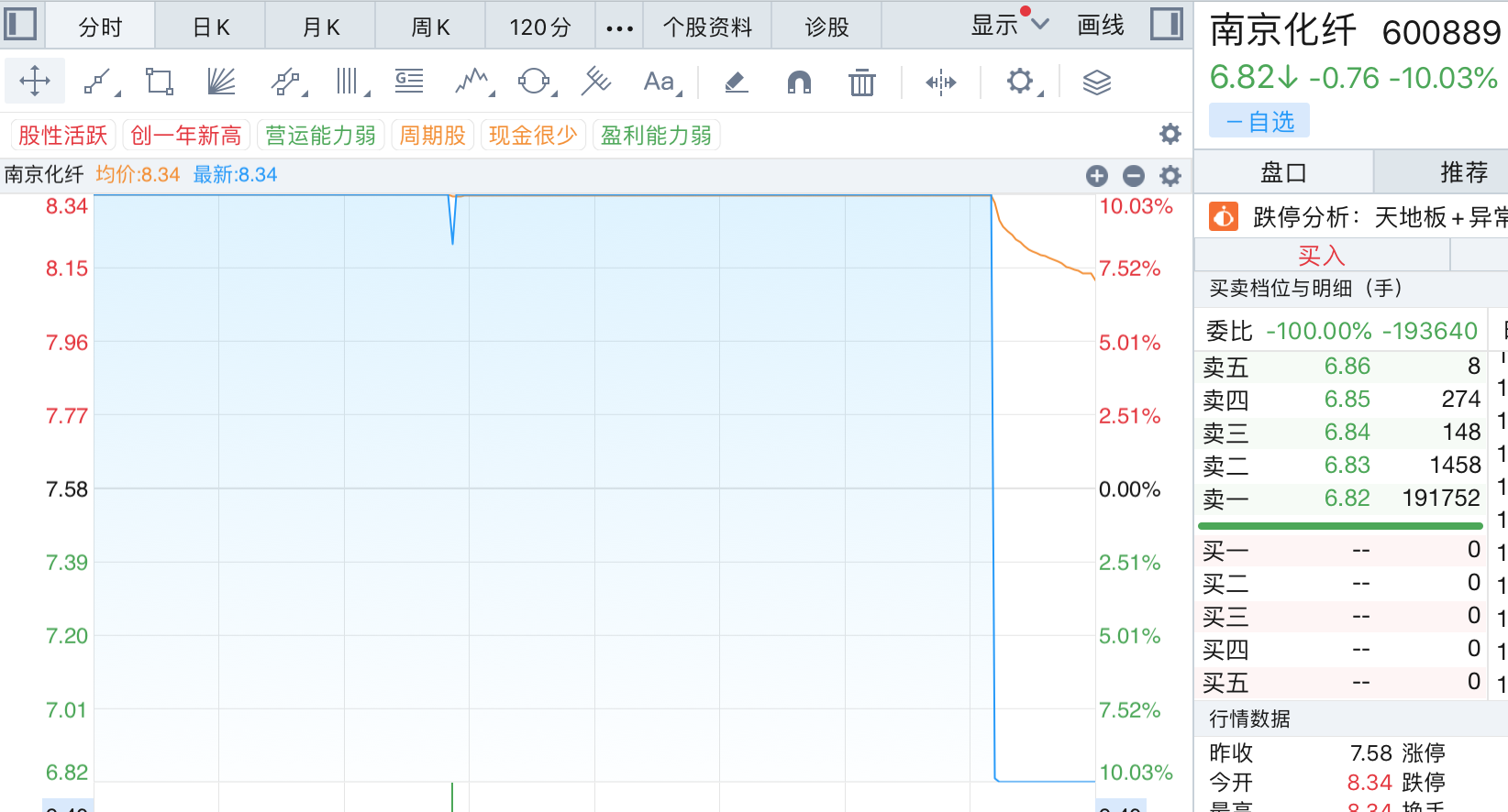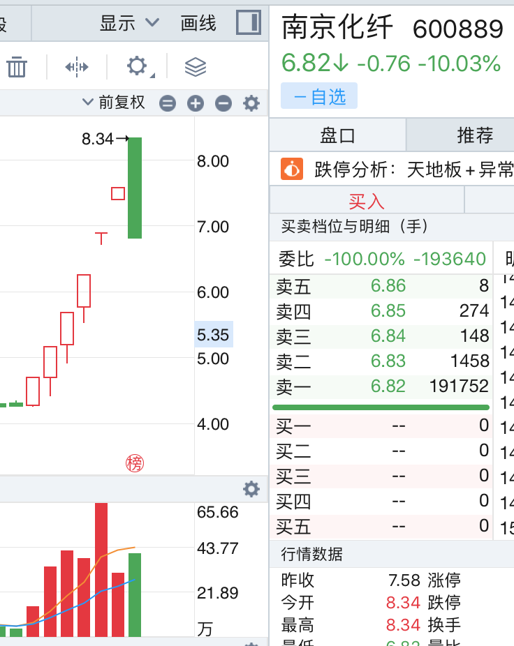 从“7连板”到“天地板”需要用多少时间?南京化纤(600889.SH)给出了答案:27秒!