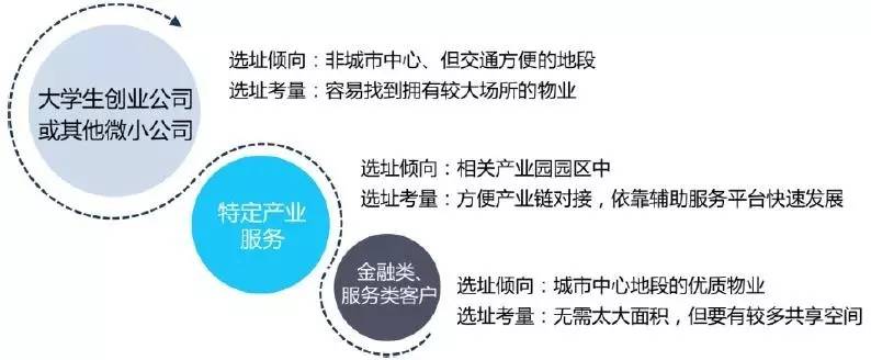 不同类型的联合办公空间,选址考量因素不同。整体来看,联合办公多选择一线及热点二线这类经济体量大、经济增速较高、产业及科技发展良好、人口聚集力较强的核心城市,联合办公空间的选址根据其服务的客户不同,选址的倾向与考量均有不同。