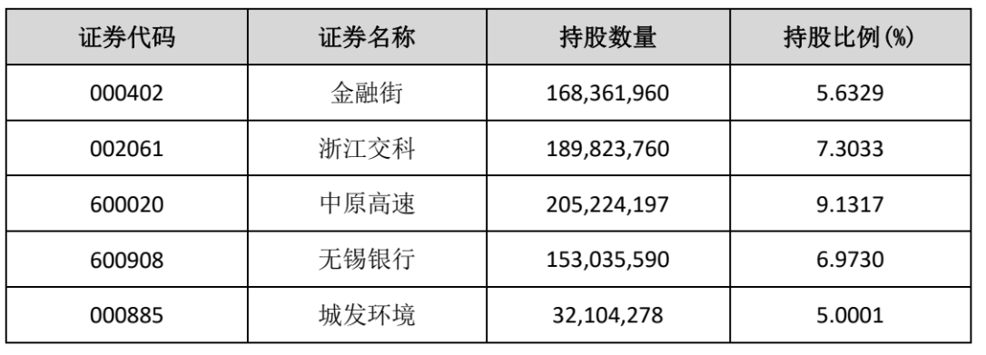 在本次江南水务和城发环境的权益变动书中,也披露了长城人寿目前的持股状况。长城人寿目前持股达到5%以上的公司数有6家,除金融街外,其余5家均是在最近一年举牌,其中持股最高的中原高速持股比例已达到9.13%。