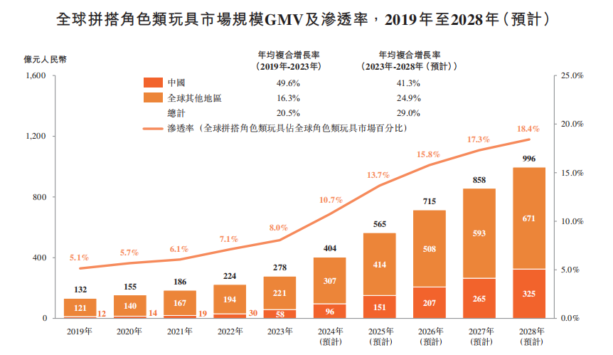 2028年,中国拼搭角色类玩具市场规模将达到325亿元