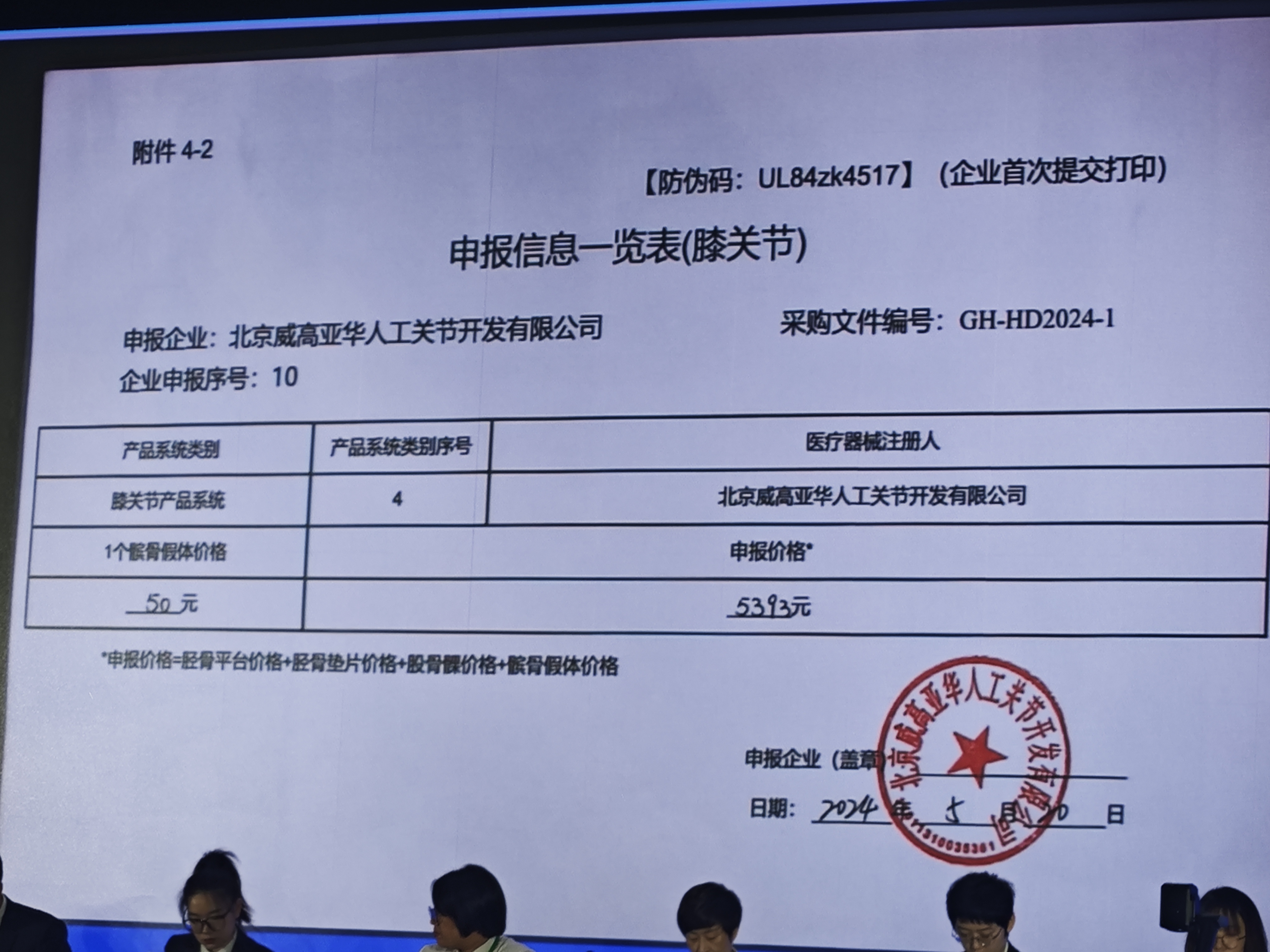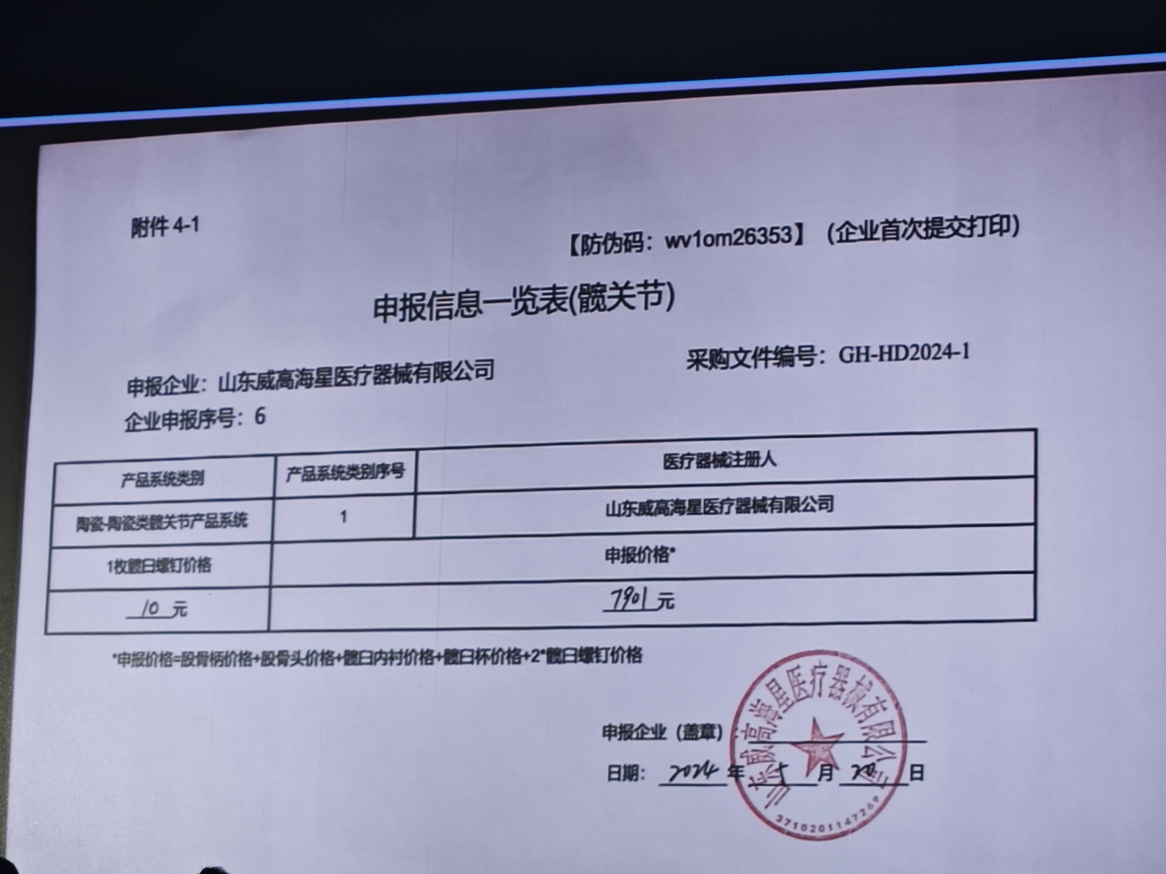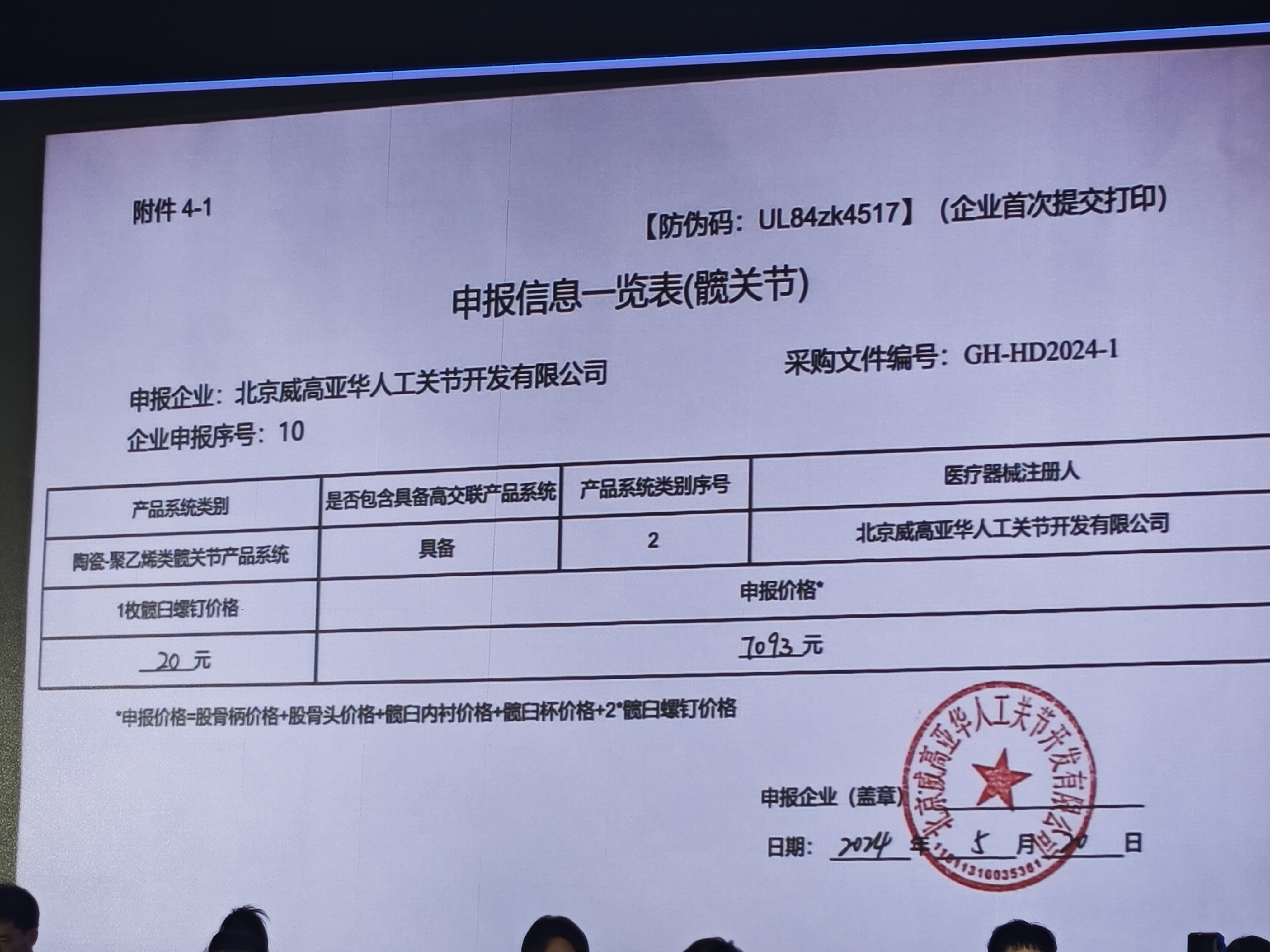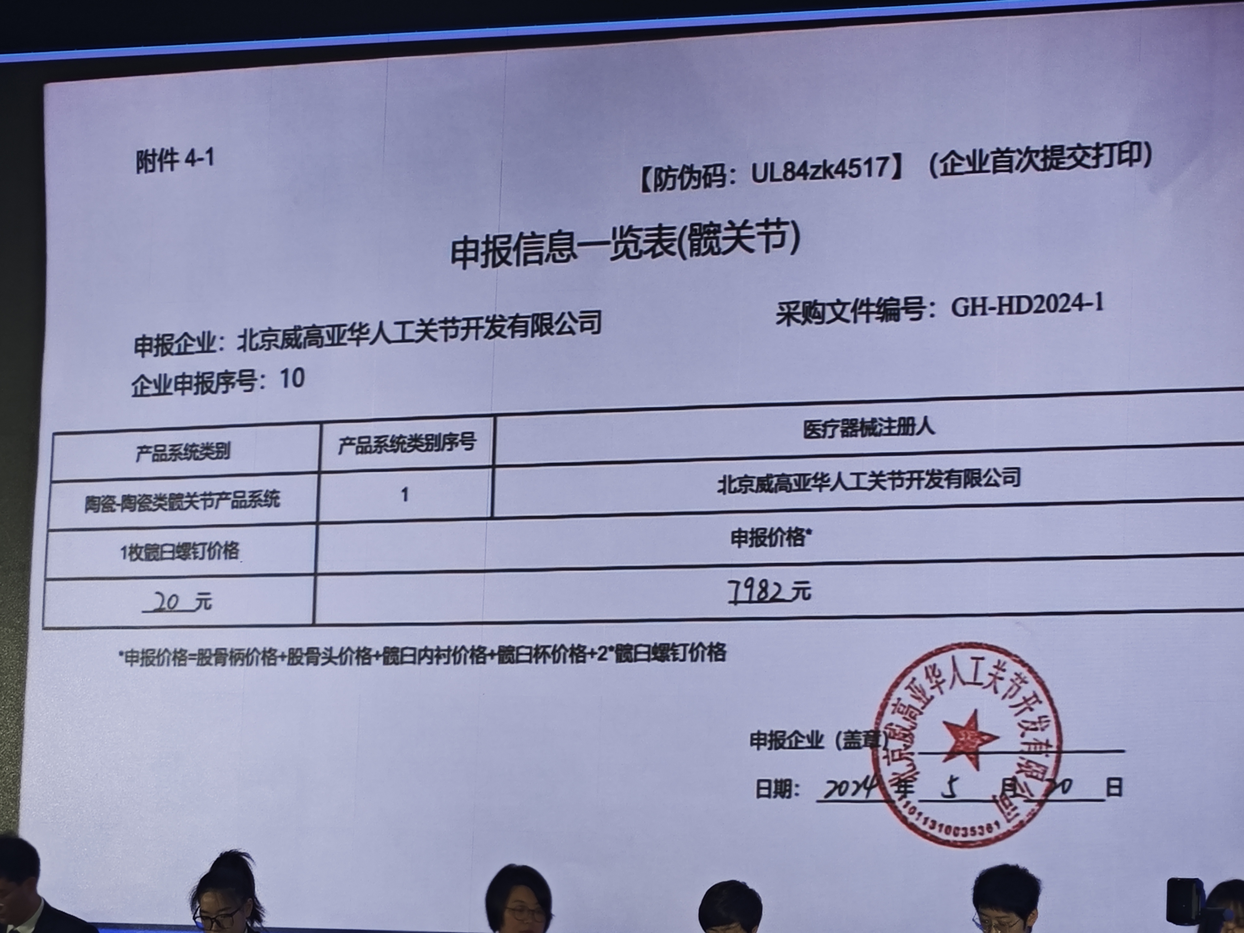 界面新闻记者从正在进行的国家组织人工关节集中带量采购协议期满接续采购现场获悉,威高共申报8个产品,具体价格如下: