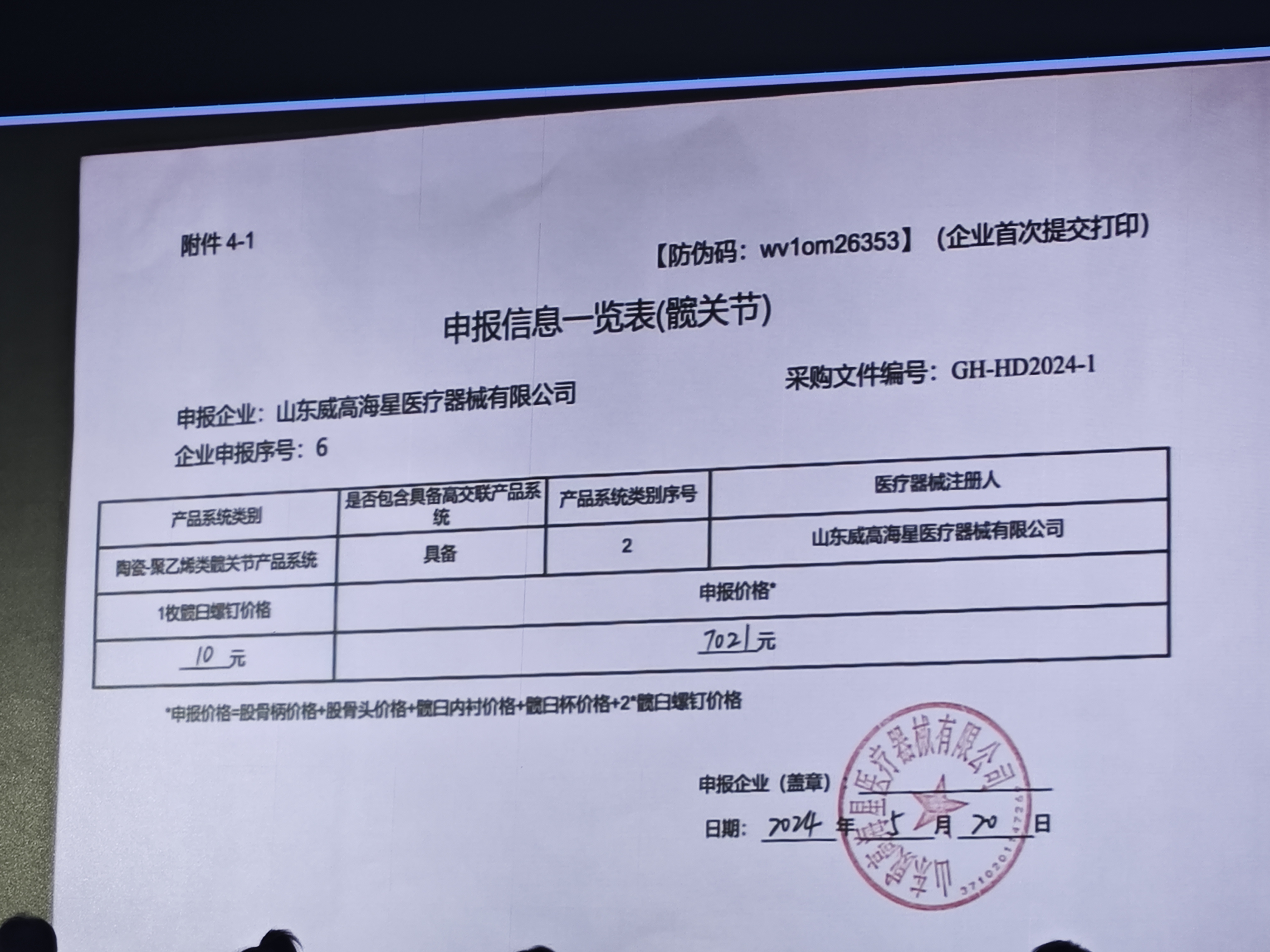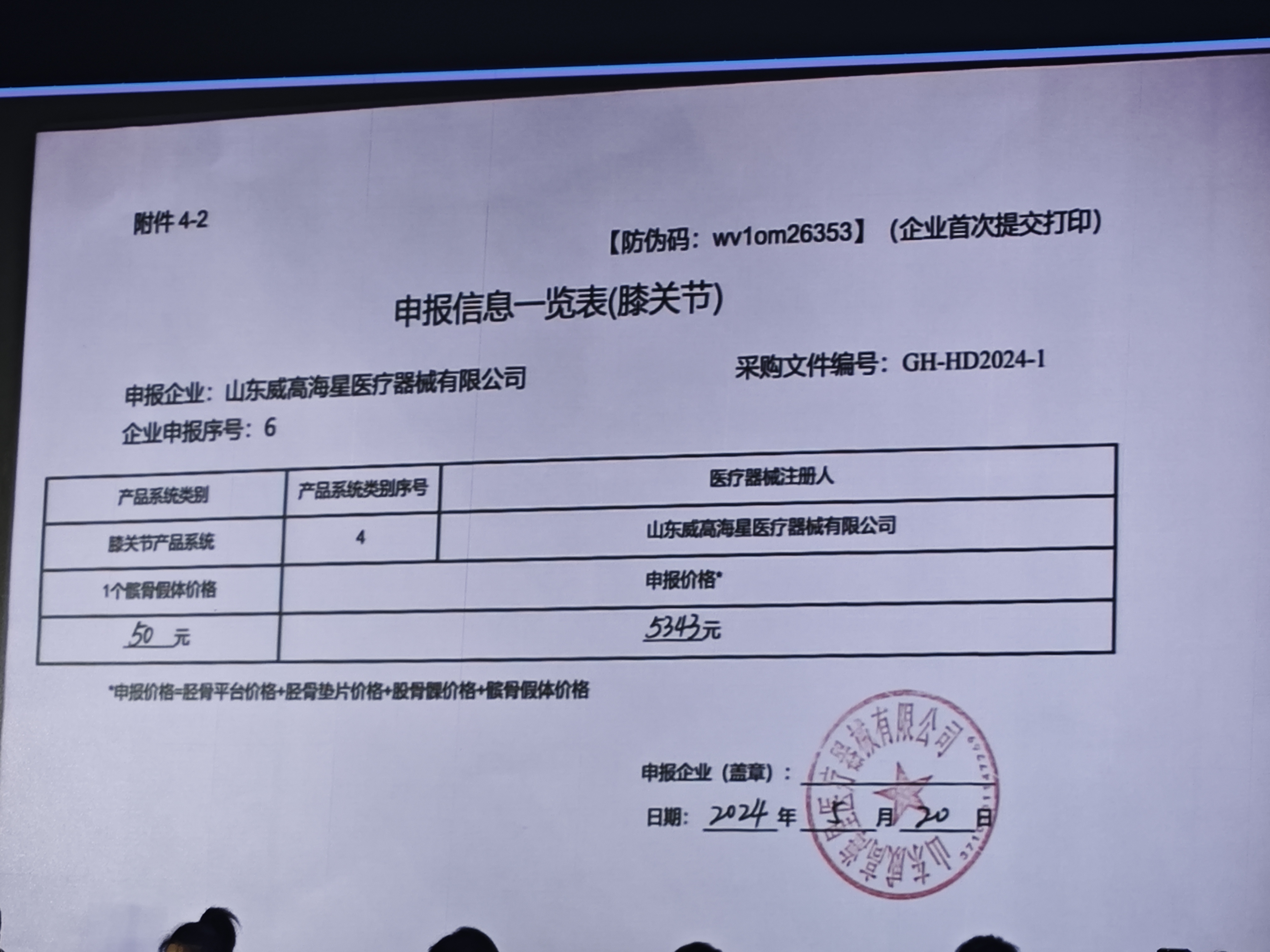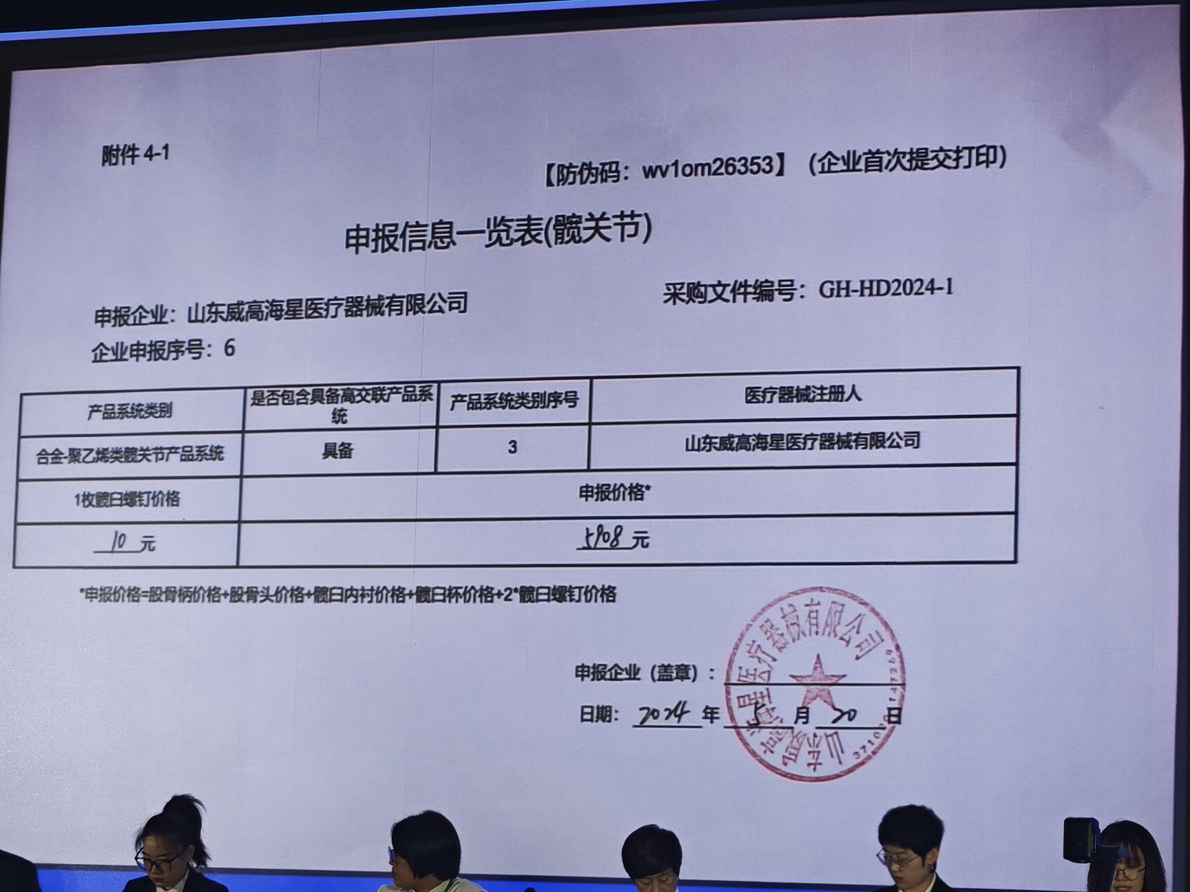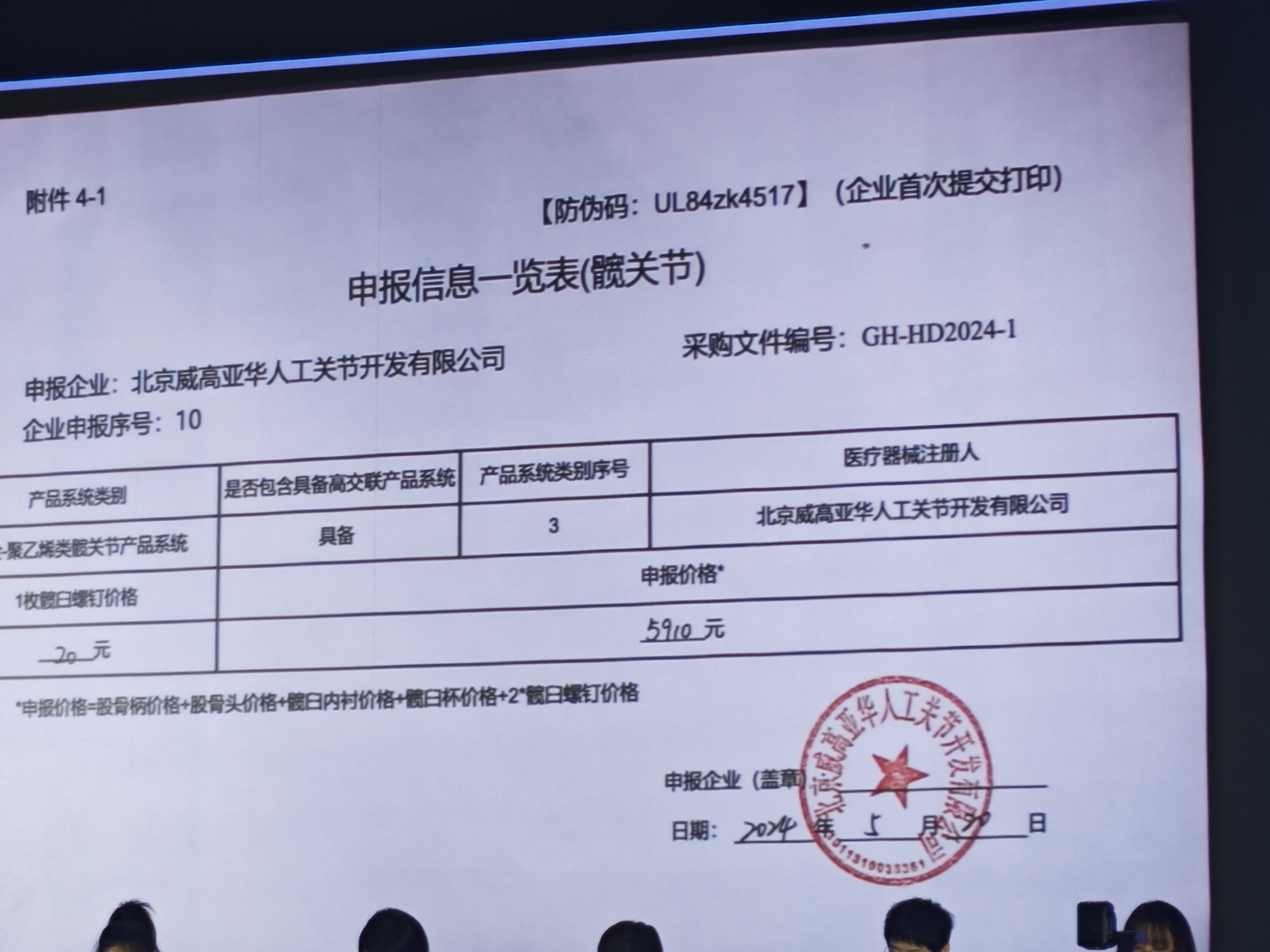 界面新闻记者从正在进行的国家组织人工关节集中带量采购协议期满接续采购现场获悉,威高共申报8个产品,具体价格如下: