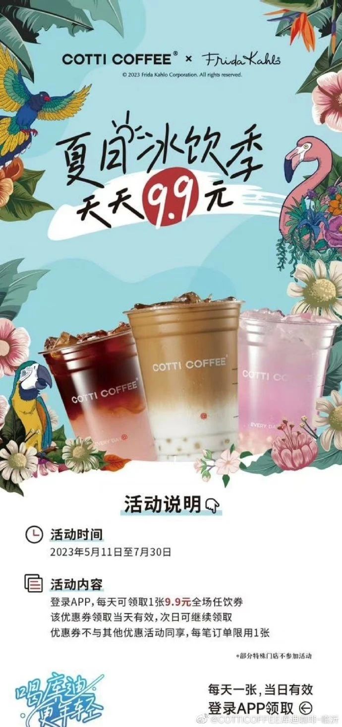 ▲ 2023年的5月11号,库迪开启“夏日冰饮季,天天9.9”的促销活动。图 / 库迪微博