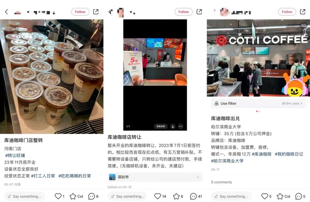▲ 社交平台上“转让库迪门店”的帖子来自全国各地。图 / 小红书截图
