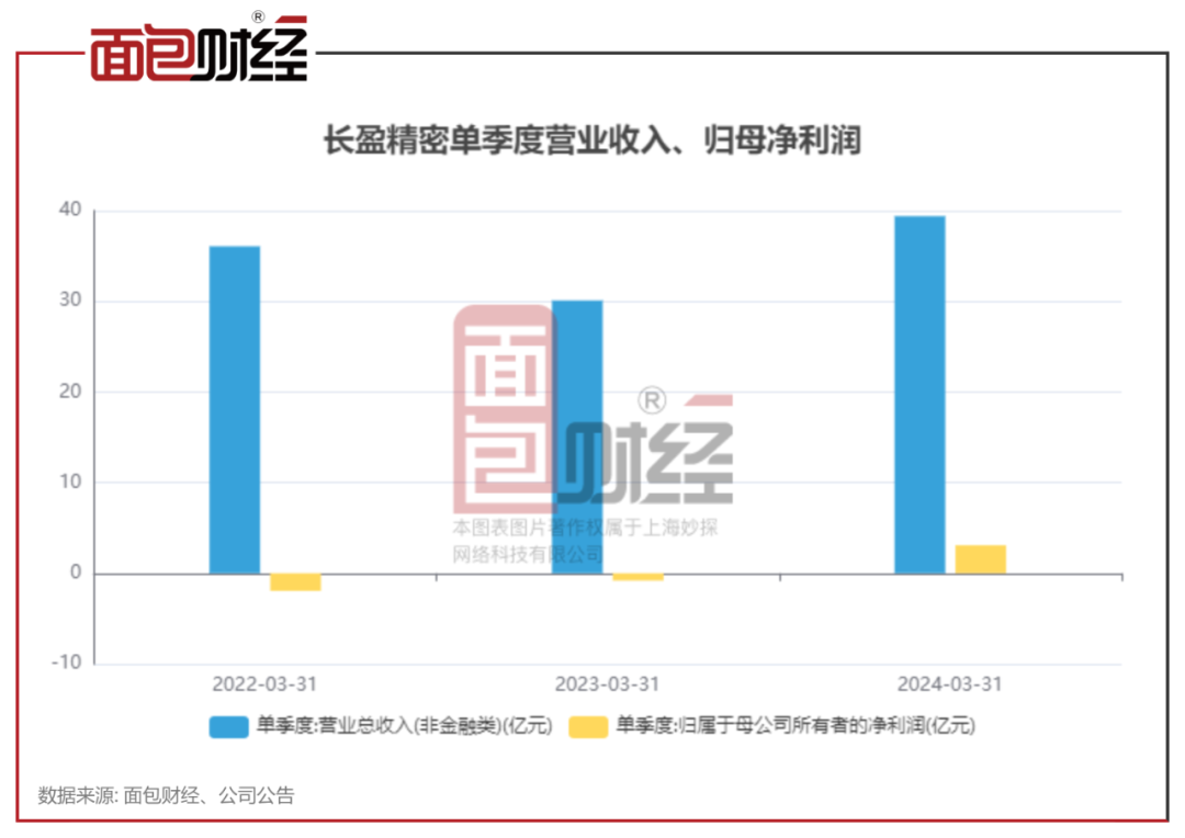 2024年一季度,长盈精密实现营收39.4亿元,同比增长30.95%;实现归母净利润3.09亿元,同比扭亏为盈。
