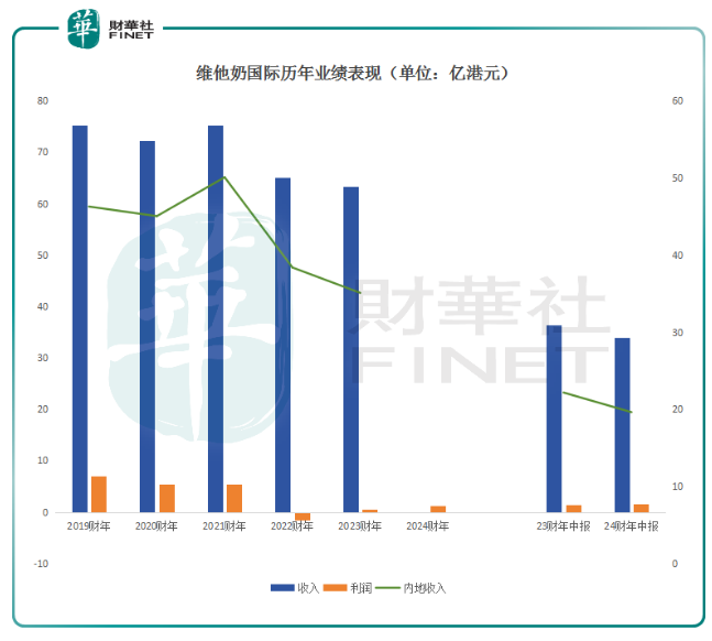 维他奶国际是一家历时80余年的老品牌,专注生产及分销植物食品及饮品,其创立于香港,但其发展与内地市场息息相关。根据财报显示,内地业务长期占维他奶总营收的6成以上。